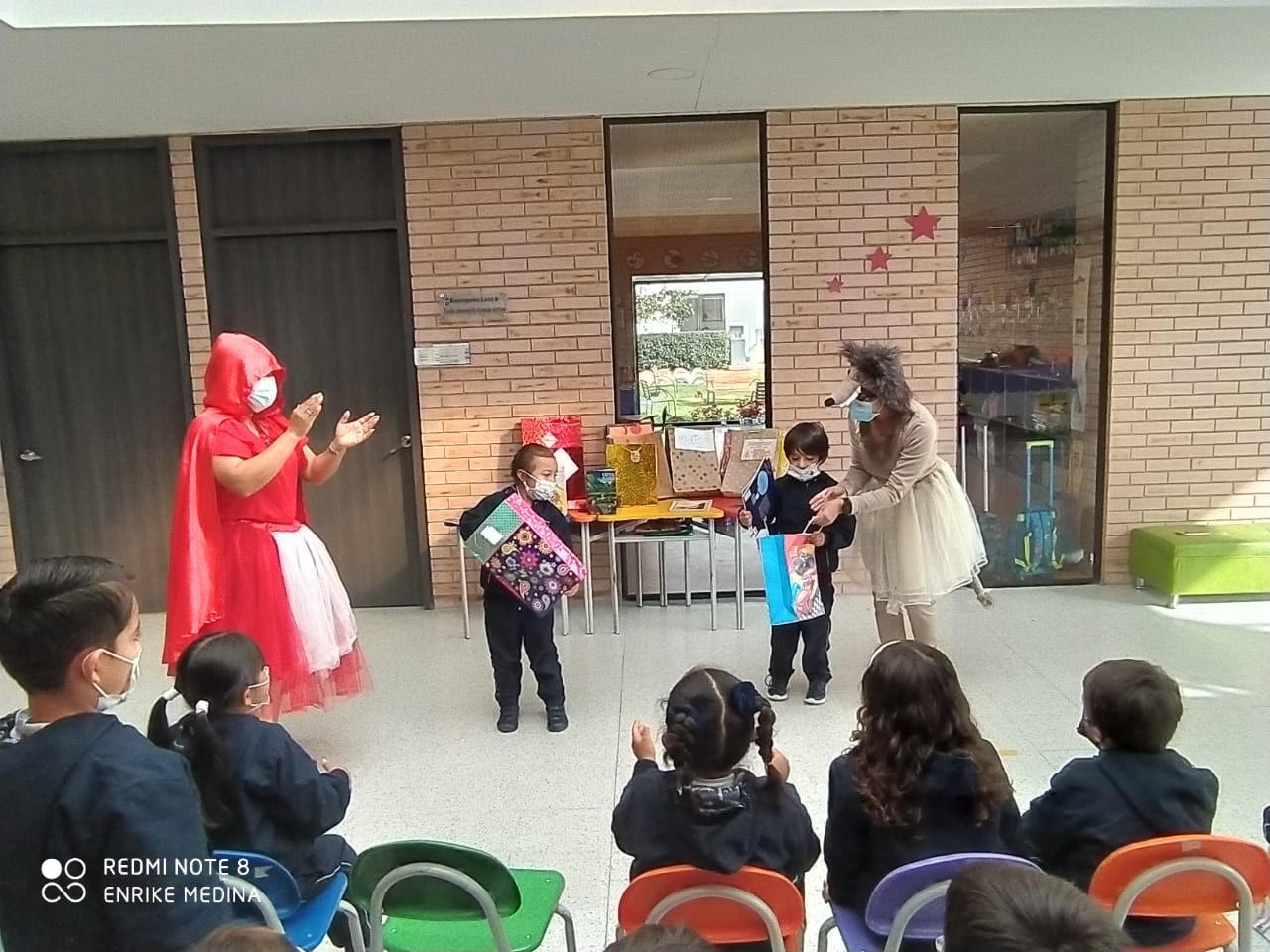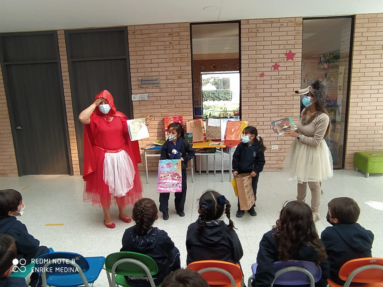 Desde la asignatura de español, los estudiantes de preescolar recibieron regalos de Caperucita roja y el lobo 🐺 feroz.